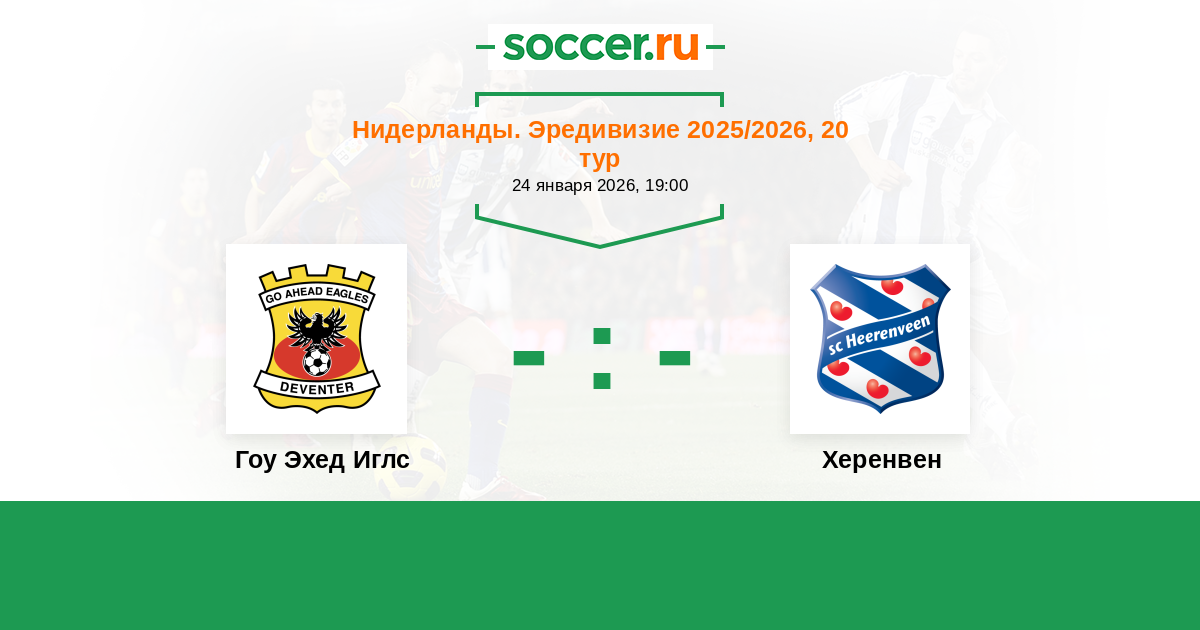 Нидерланды. Эредивизи 17.02.2024 Херенвен Логотип футбольный клуб Херенвен 0:2 Логотип футбольный клуб Гоу Эхед Иглс (Девентер) Гоу Эхед Иглс
