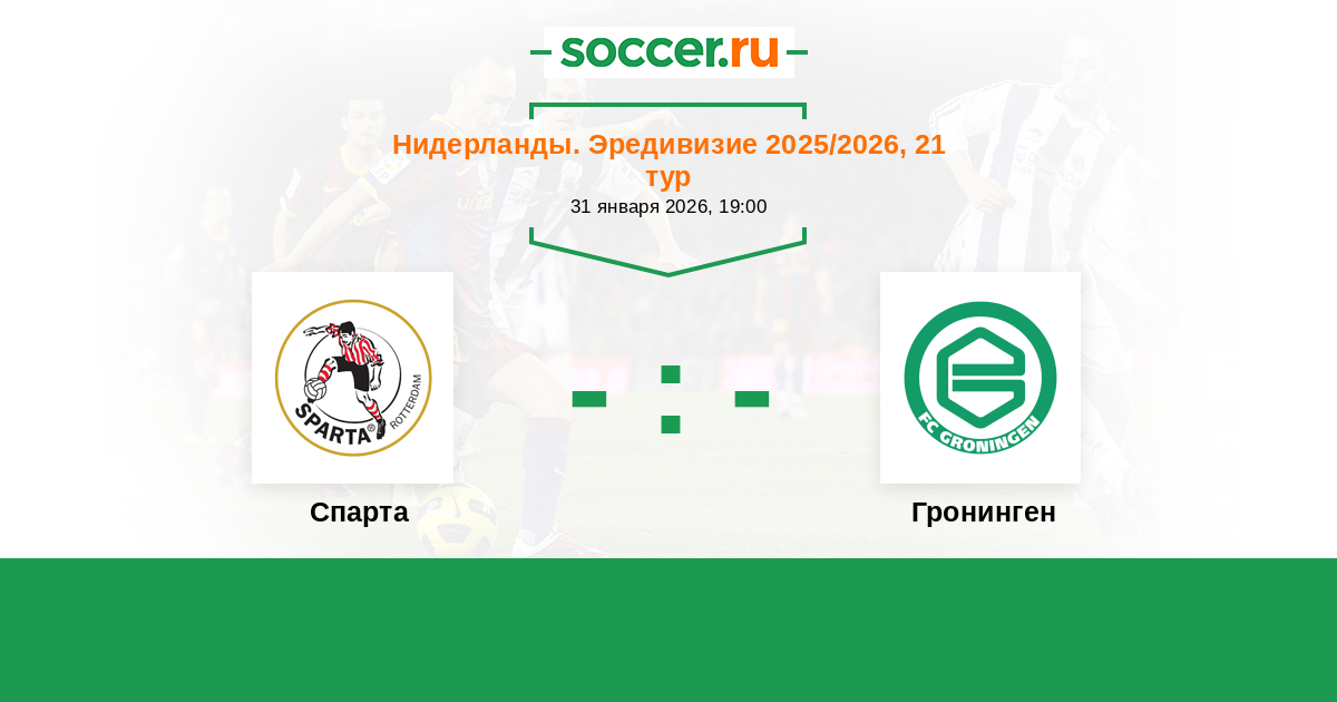 Нидерланды. Эредивизи 02.02.2025 Спарта Логотип футбольный клуб Спарта (Роттердам) 1:0 Логотип футбольный клуб Гронинген Гронинген