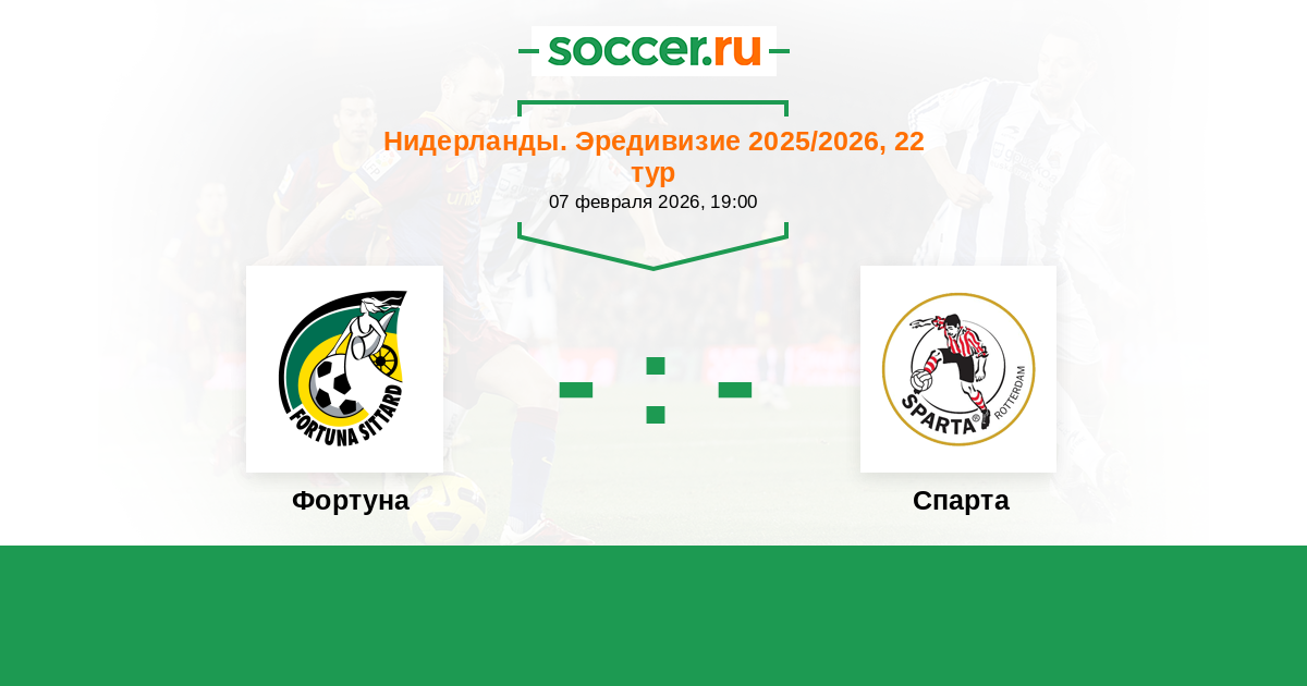 Нидерланды. Эредивизи 03.02.2023 Фортуна Логотип футбольный клуб Фортуна (Ситтард) 0:0 Логотип футбольный клуб Спарта (Роттердам) Спарта
