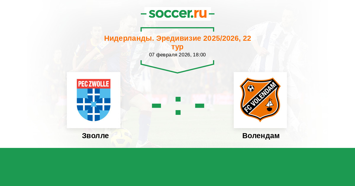 Нидерланды. Эредивизи 02.12.2023 Волендам Логотип футбольный клуб Волендам 0:5 Логотип футбольный клуб Зволле Зволле