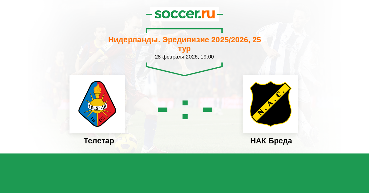 Нидерланды. Эредивизи 20.12.2025 НАК Бреда Логотип футбольный клуб НАК Бреда 0:1 Логотип футбольный клуб Телстар (Велсен-Зёйд) Телстар