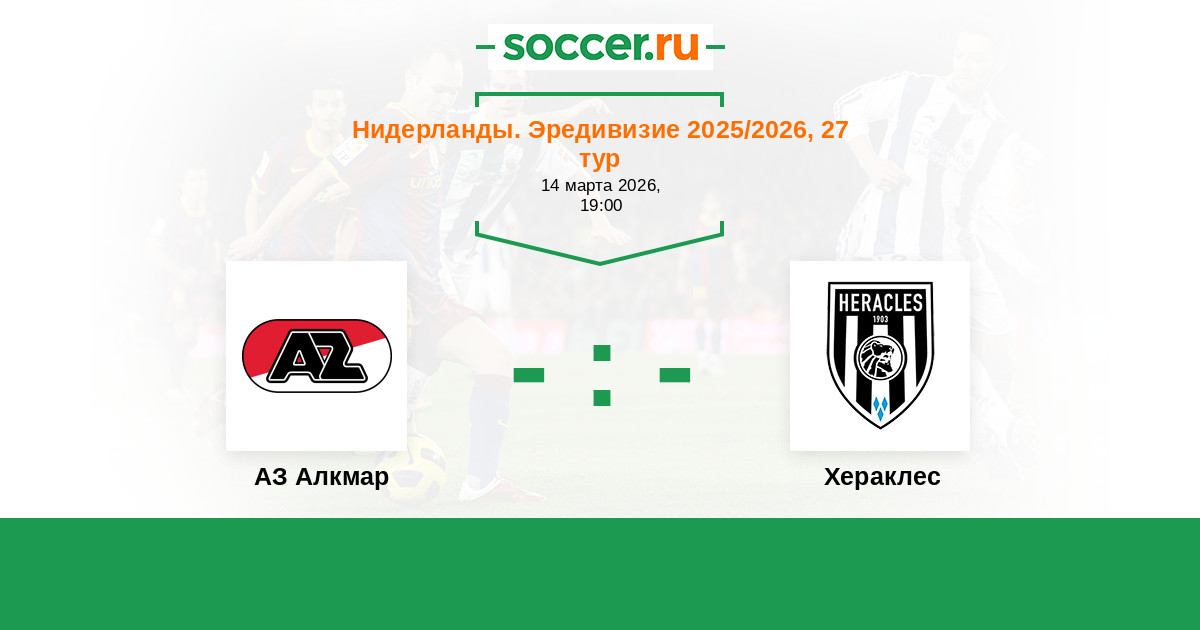 Нидерланды. Эредивизи 13.04.2025 Хераклес Логотип футбольный клуб Хераклес (Алмело) 1:0 Логотип футбольный клуб АЗ Алкмар АЗ Алкмар