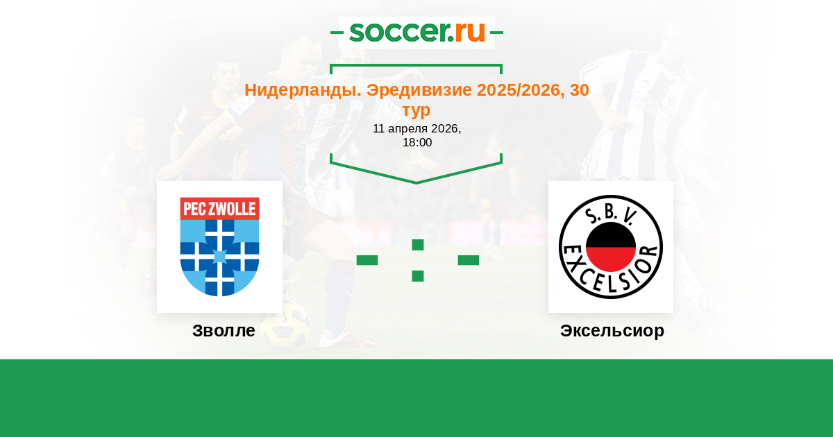 Нидерланды. Эредивизи 14.04.2018 Зволле Логотип футбольный клуб Зволле 1:1 Логотип футбольный клуб Эксельсиор (Роттердам) Эксельсиор