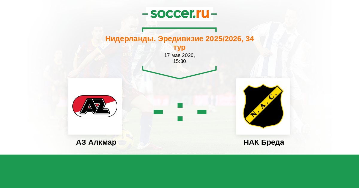 Нидерланды. Эредивизи 24.04.2025 АЗ Алкмар Логотип футбольный клуб АЗ Алкмар 1:1 Логотип футбольный клуб НАК Бреда НАК Бреда