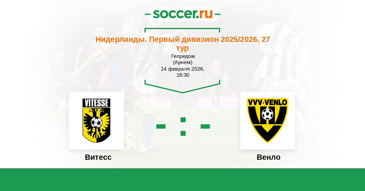 Нидерланды. Эредивизи 27.02.2021 Витесс Логотип футбольный клуб Витесс (Арнем) 4:1 Логотип футбольный клуб Венло Венло