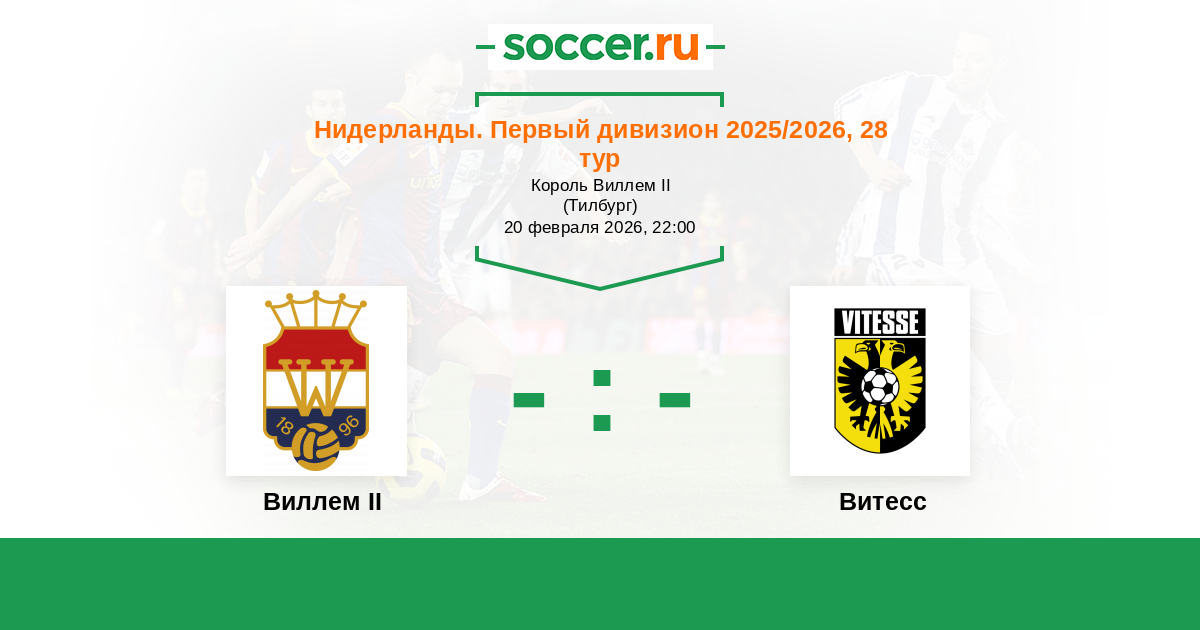 Нидерланды. Первый дивизион 27.09.2025 Витесс Логотип футбольный клуб Витесс (Арнем) 1:2 Логотип футбольный клуб Виллем II (Тилбург) Виллем II