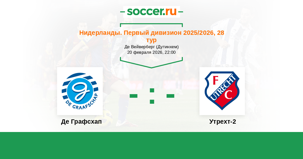 Нидерланды. Первый дивизион 20.01.2025 Утрехт-2 Логотип футбольный клуб Утрехт-2 1:1 Логотип футбольный клуб Де Графсхап (Дутинхем) Де Графсхап