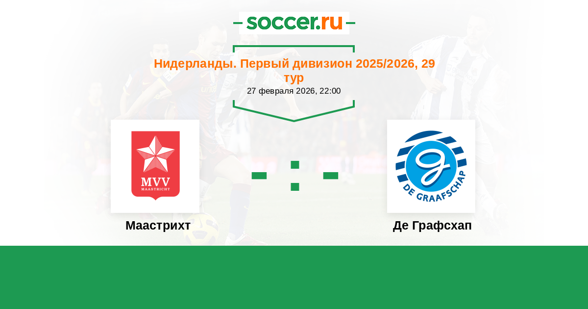 Нидерланды. Первый дивизион 28.02.2014 Де Графсхап Логотип футбольный клуб Де Графсхап (Дутинхем) 0:1 Логотип футбольный клуб Маастрихт Маастрихт