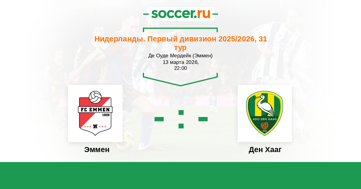 Нидерланды. Первый дивизион 07.03.2025 Эммен Логотип футбольный клуб Эммен 0:1 Логотип футбольный клуб Ден Хааг (Гаага) Ден Хааг