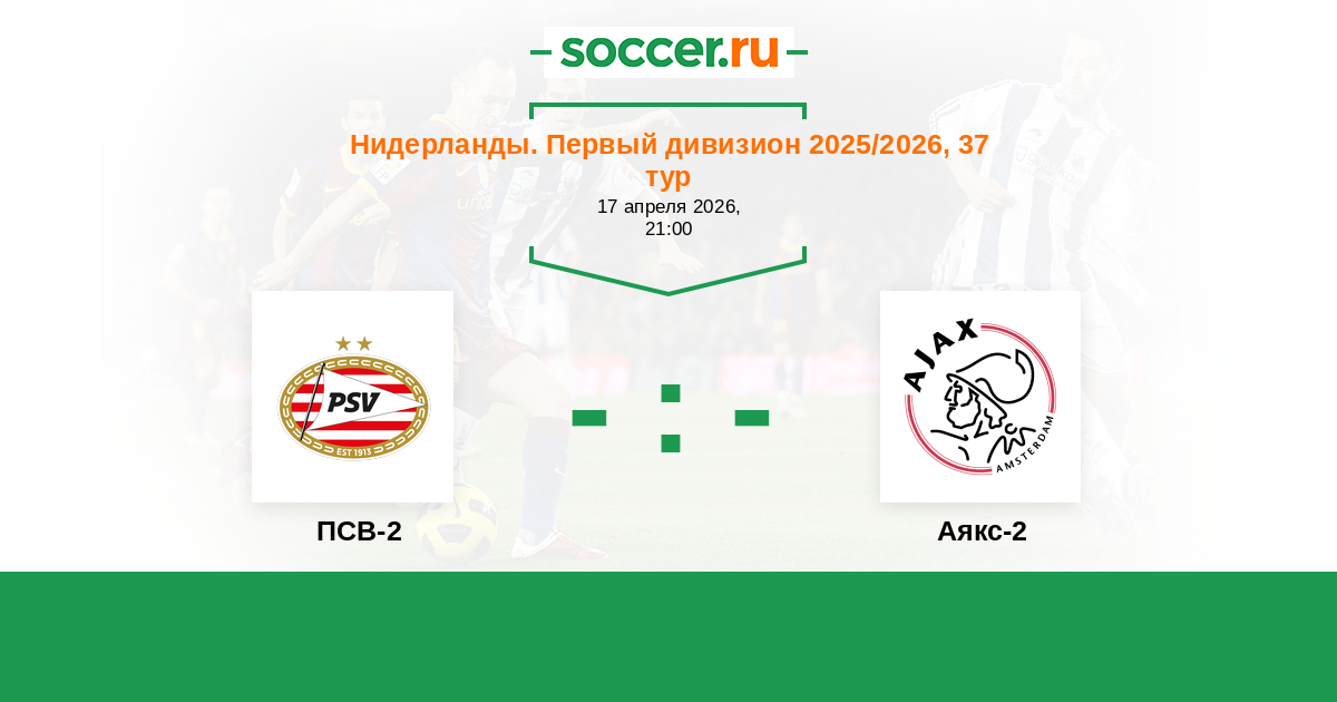 Нидерланды. Первый дивизион 24.10.2014 Аякс-2 Логотип футбольный клуб Аякс-2 (Амстердам) 1:1 Логотип футбольный клуб ПСВ-2 (Эйндховен) ПСВ-2