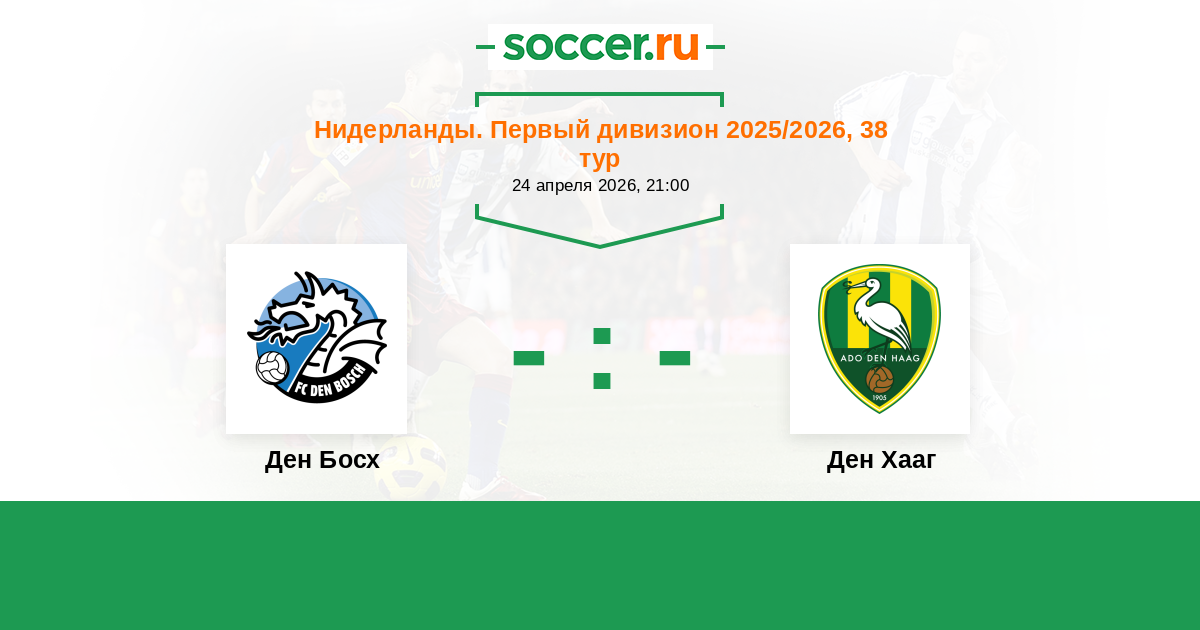 Нидерланды. Первый дивизион 26.02.2023 Ден Босх Логотип футбольный клуб Ден Босх (Хертогенбос) 0:0 Логотип футбольный клуб Ден Хааг (Гаага) Ден Хааг