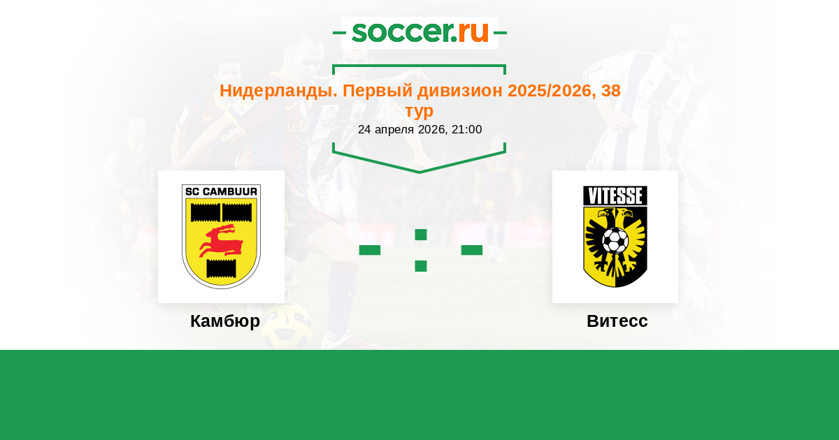 Нидерланды. Первый дивизион 25.04.2025 Камбюр Логотип футбольный клуб Камбюр (Лиуварден) 2:1 Логотип футбольный клуб Витесс (Арнем) Витесс