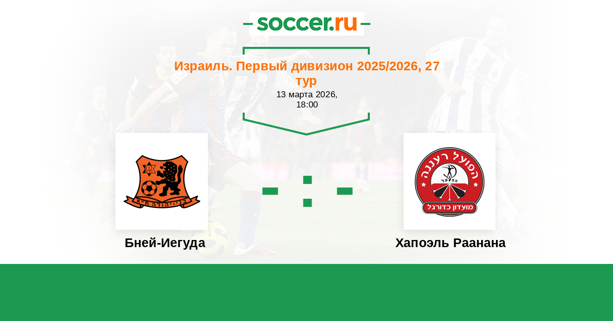 Израиль. Премьер-Лига 20.01.2018 Хапоэль Раанана Логотип футбольный клуб Хапоэль Раанана 1:1 Логотип футбольный клуб Бней-Иегуда (Тель-Авив) Бней-Иегуда