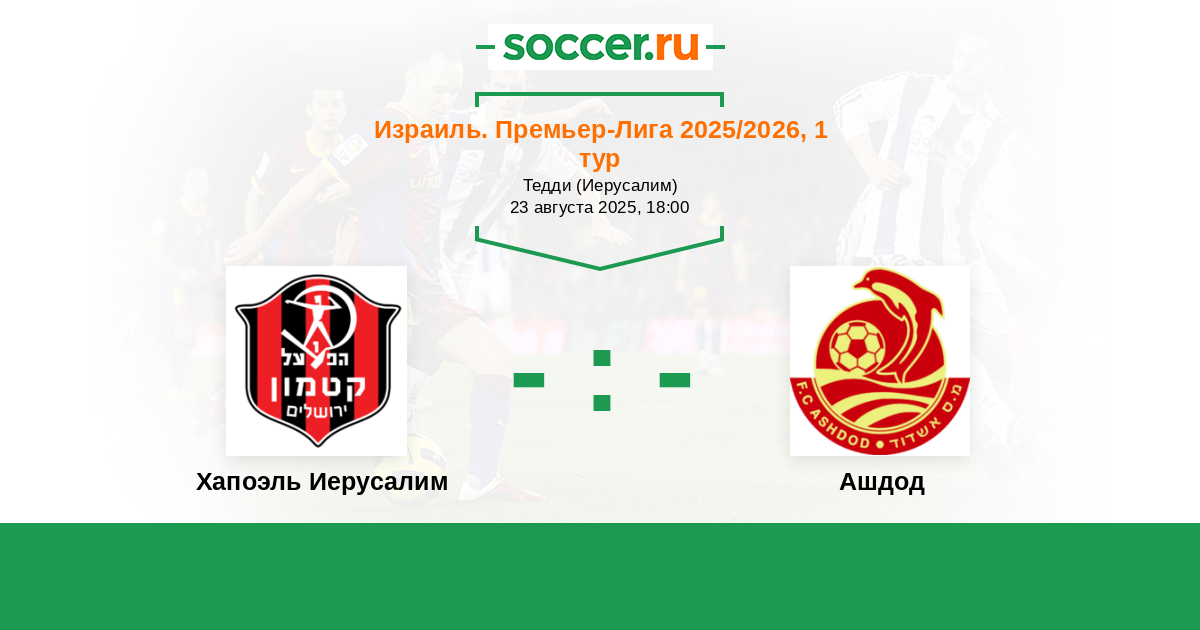 Протокол матча Хапоэль Иерусалим против Ашдод