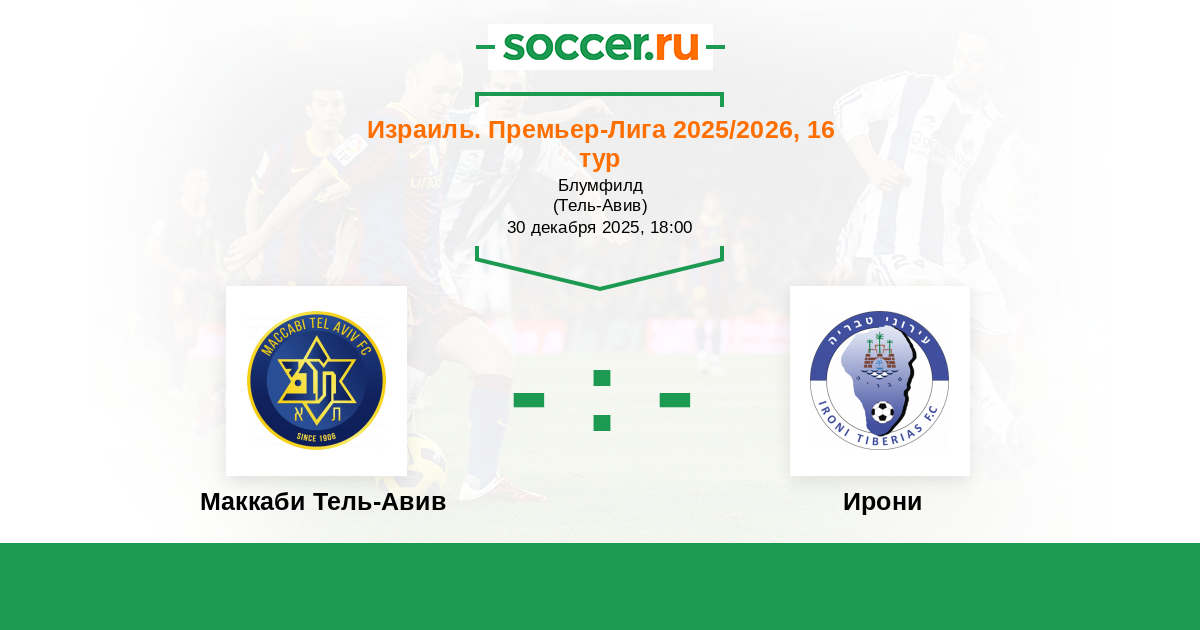 Протокол матча Маккаби Тель-Авив против Ирони