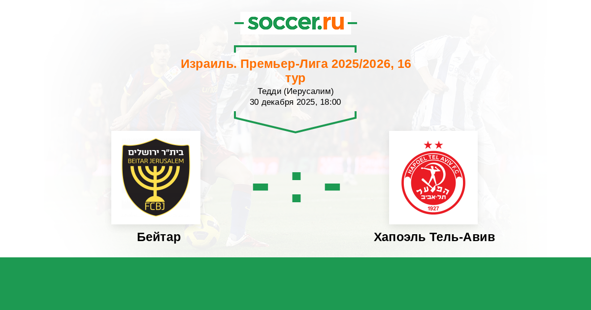 Израиль. Премьер-Лига 16.12.2006 Хапоэль Тель-Авив Логотип футбольный клуб Хапоэль Тель-Авив 1:1 Логотип футбольный клуб Бейтар (Иерусалим) Бейтар