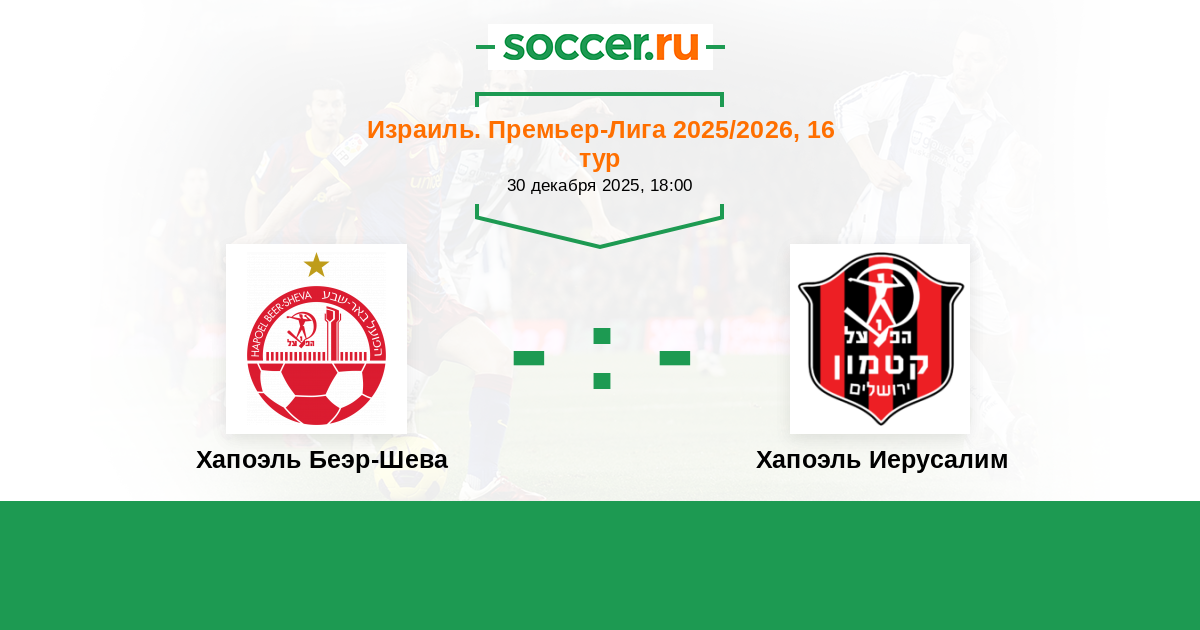 Протокол матча Хапоэль Беэр-Шева против Хапоэль Иерусалим