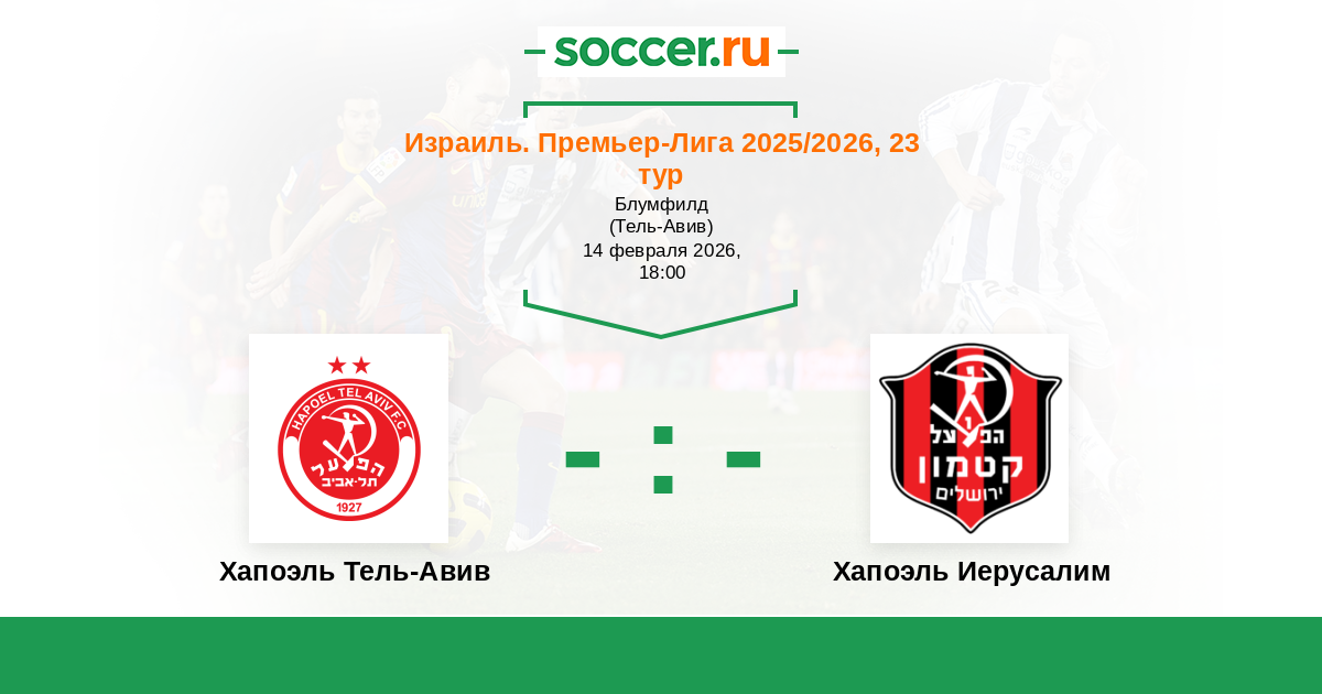 Израиль. Премьер-Лига 08.11.2025 Хапоэль Иерусалим Логотип футбольный клуб Хапоэль Иерусалим 0:0 Логотип футбольный клуб Хапоэль Тель-Авив Хапоэль Тель-Авив