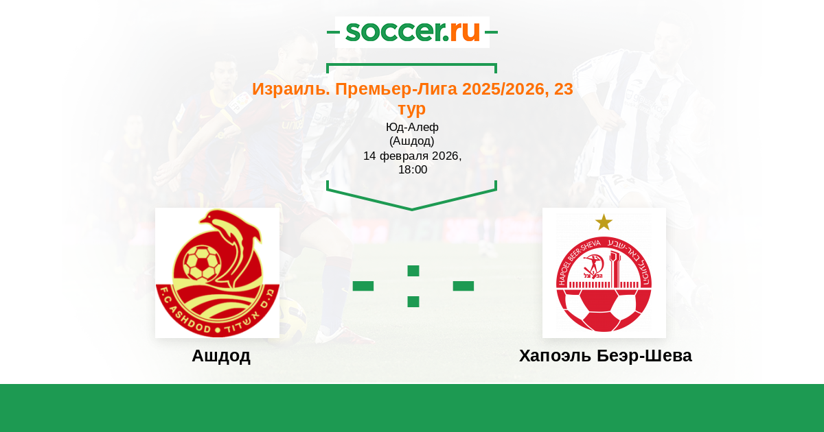 Израиль. Премьер-Лига 01.02.2014 Хапоэль Беэр-Шева Логотип футбольный клуб Хапоэль Беэр-Шева 2:0 Логотип футбольный клуб Ашдод Ашдод