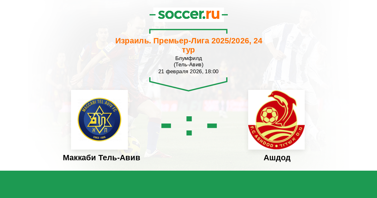 Израиль. Премьер-Лига 01.03.2021 Маккаби Тель-Авив Логотип футбольный клуб Маккаби Тель-Авив 3:1 Логотип футбольный клуб Ашдод Ашдод