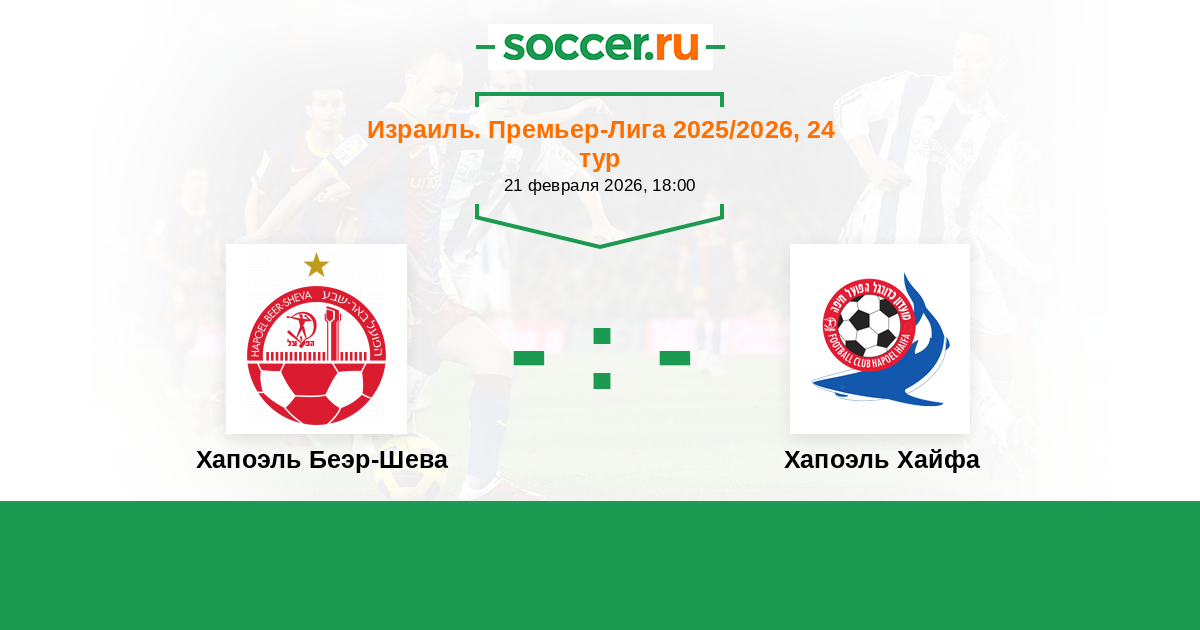 Израиль. Премьер-Лига 19.02.2017 Хапоэль Хайфа Логотип футбольный клуб Хапоэль Хайфа 0:0 Логотип футбольный клуб Хапоэль Беэр-Шева Хапоэль Беэр-Шева