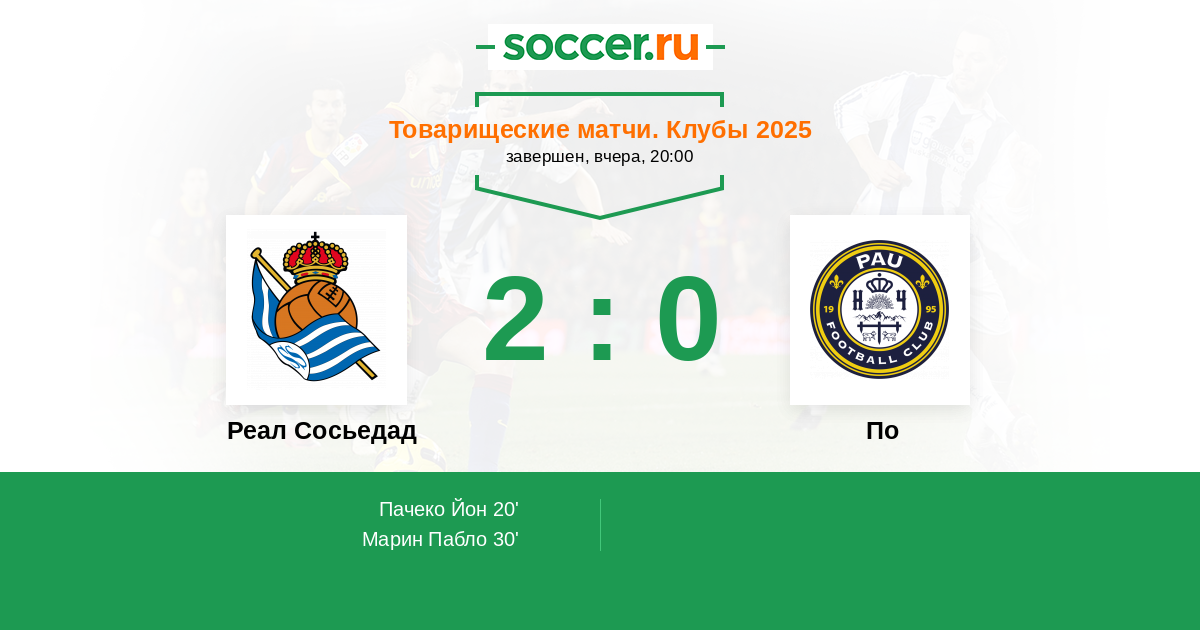 Протокол матча Реал Сосьедад против По
