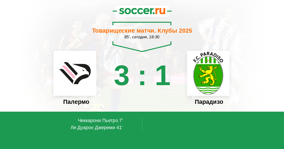 Протокол матча Палермо против Парадизо