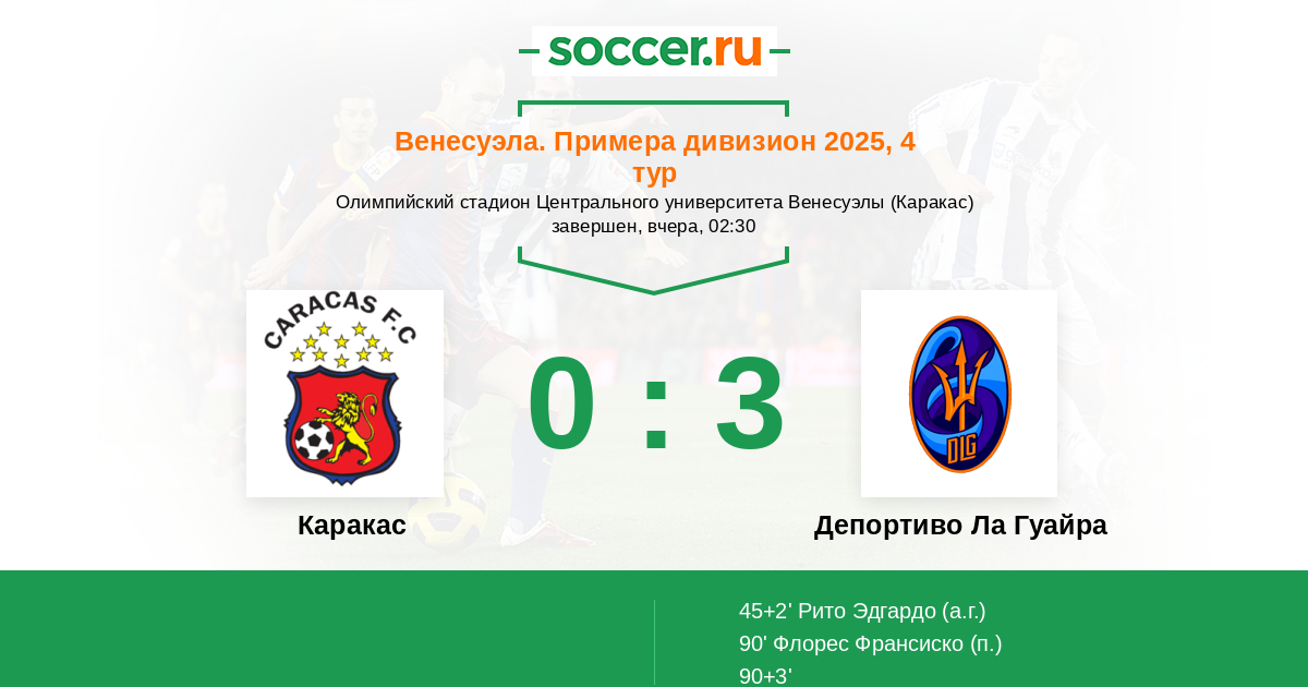 Протокол матча Каракас против Депортиво Ла Гуайра