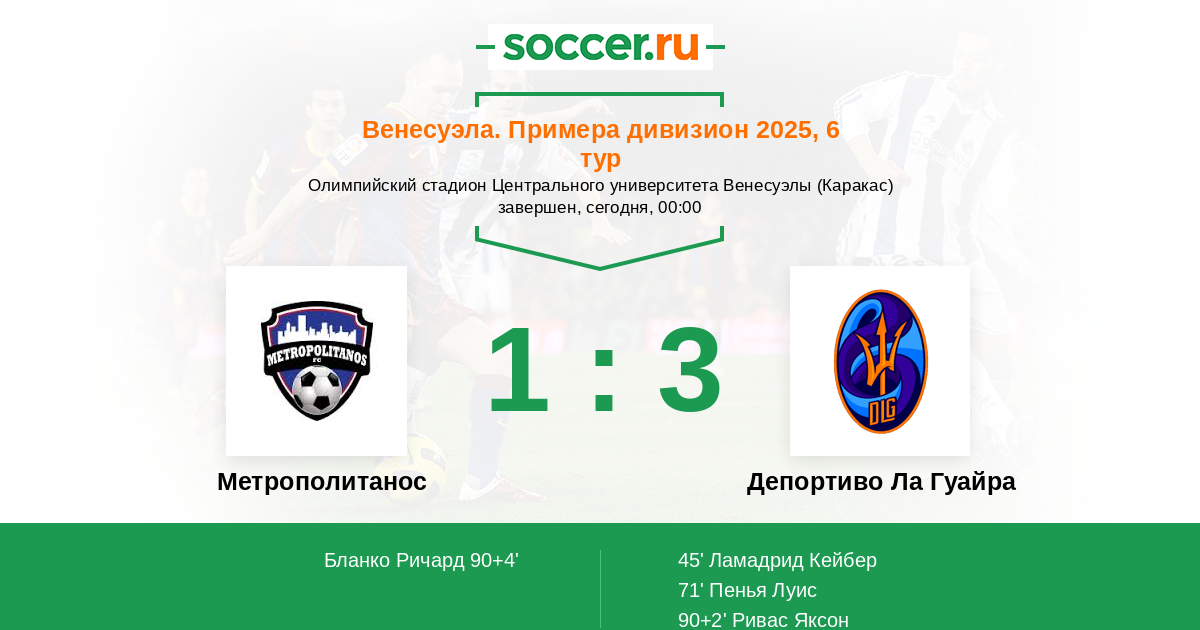 Протокол матча Метрополитанос против Депортиво Ла Гуайра