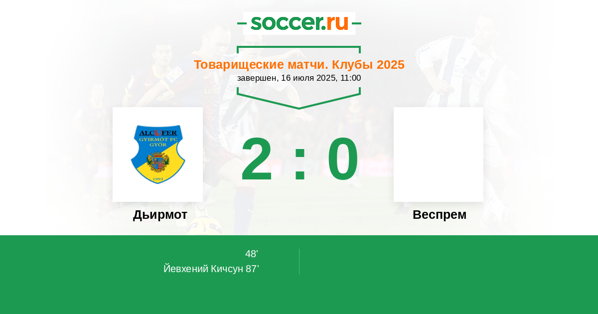 Протокол матча Дьирмот против Веспрем