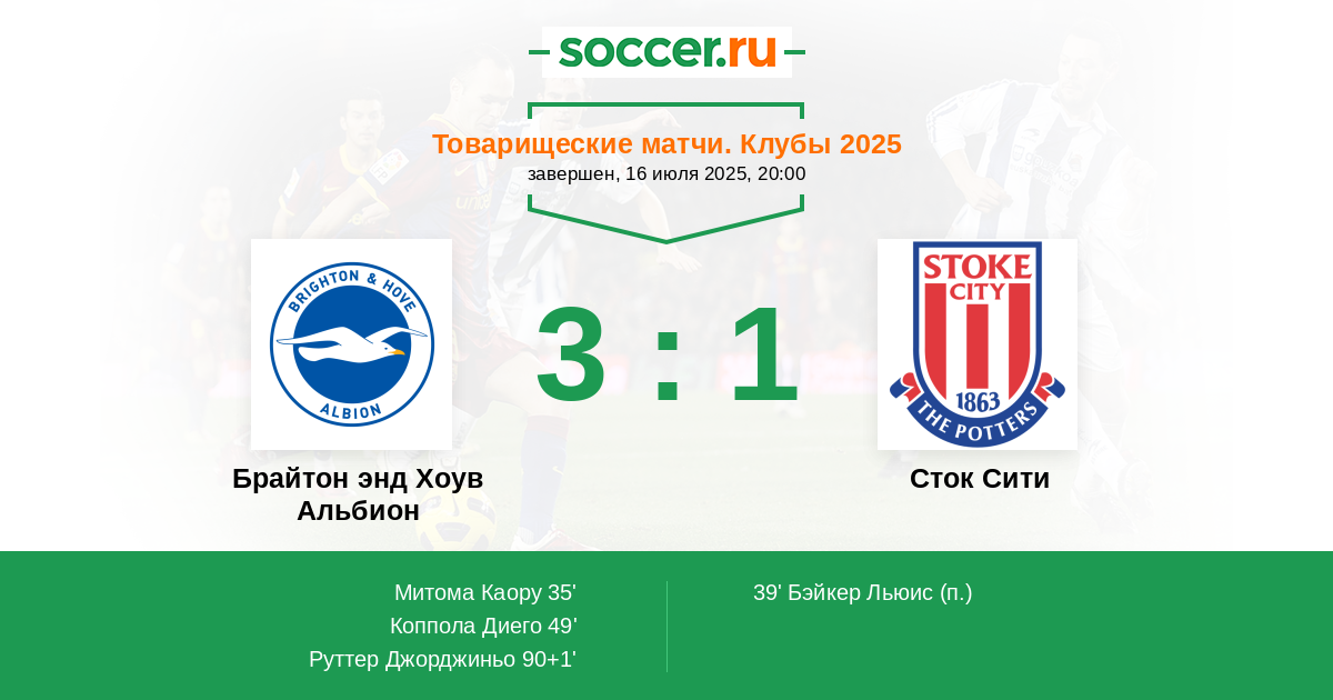 Протокол матча Брайтон энд Хоув Альбион против Сток Сити