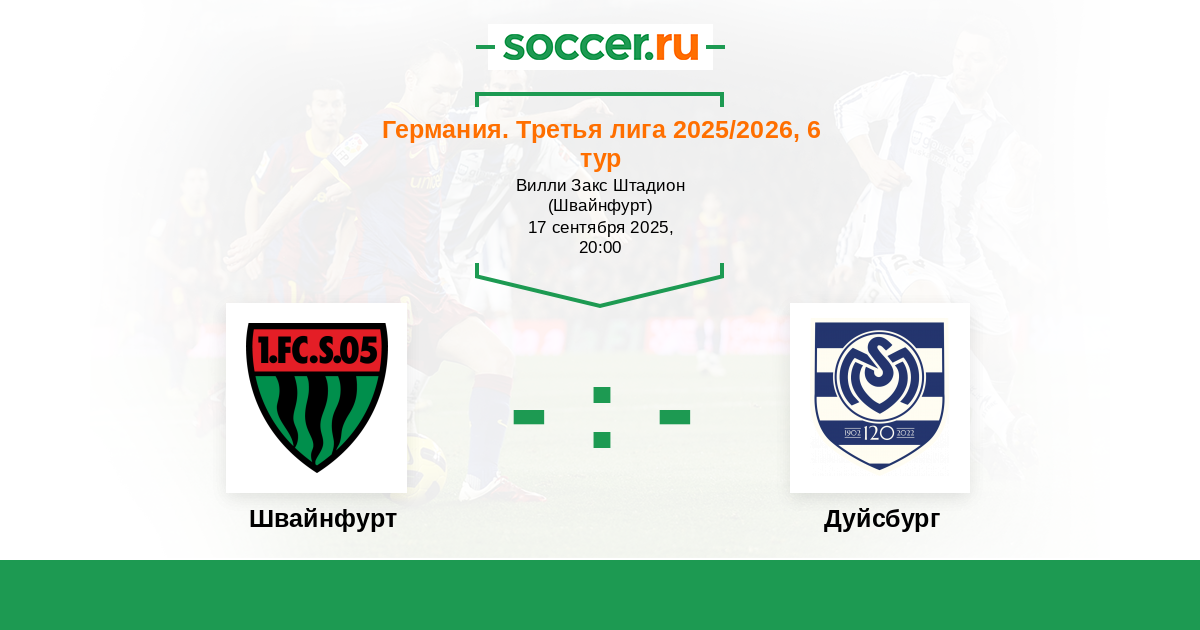 Протокол матча Швайнфурт против Дуйсбург