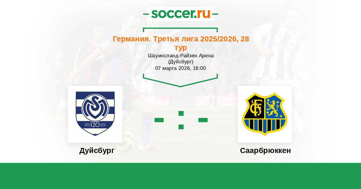Германия. Третья лига 03.03.2021 Саарбрюккен Логотип футбольный клуб Саарбрюккен 4:1 Логотип футбольный клуб Дуйсбург Дуйсбург