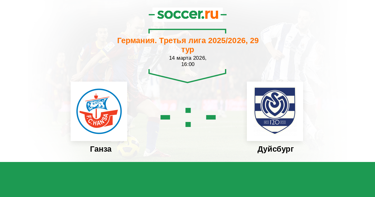 Германия. Третья лига 03.10.2025 Дуйсбург Логотип футбольный клуб Дуйсбург 2:2 Логотип футбольный клуб Ганза (Росток) Ганза