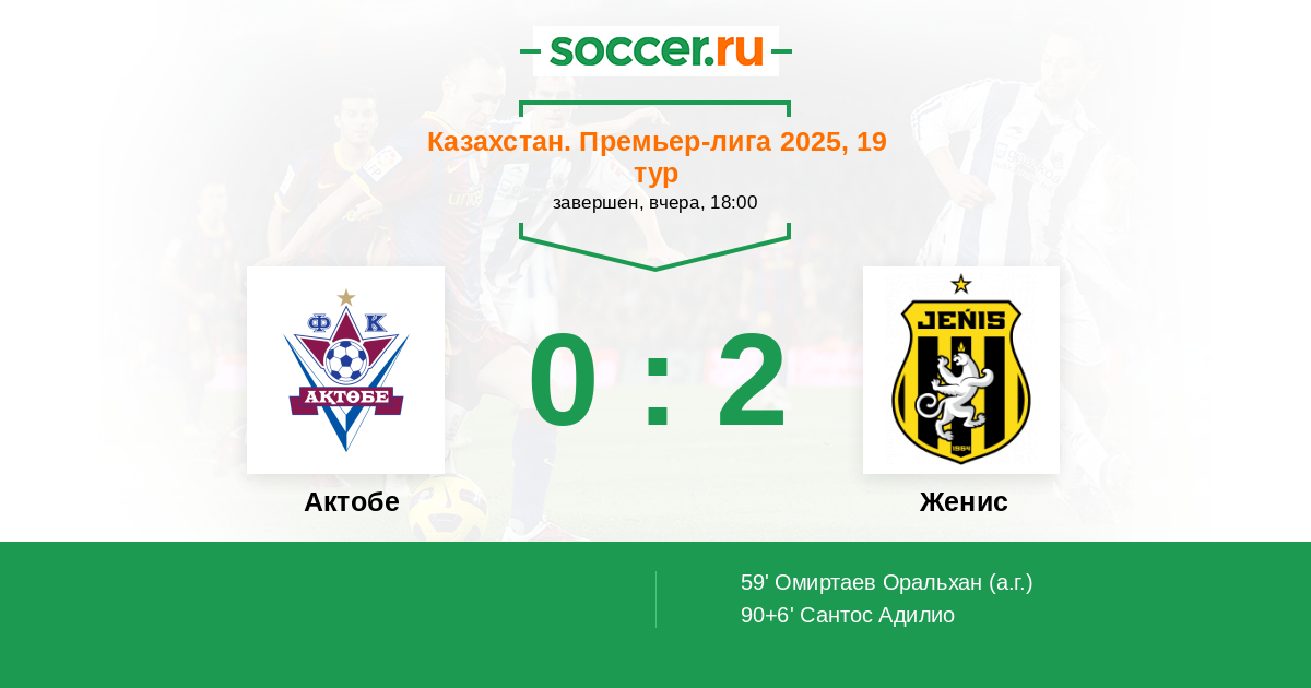 59' (0:1) Автогол Омиртаев Оральхан (19)