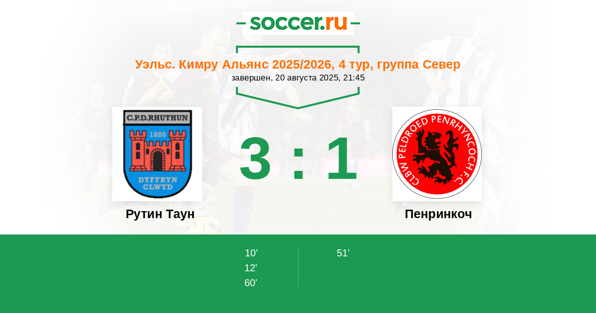 Протокол матча Рутин Таун против Пенринкоч