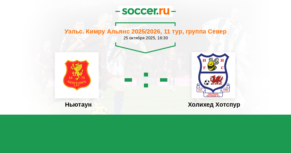 Протокол матча Ньютаун против Холихед Хотспур