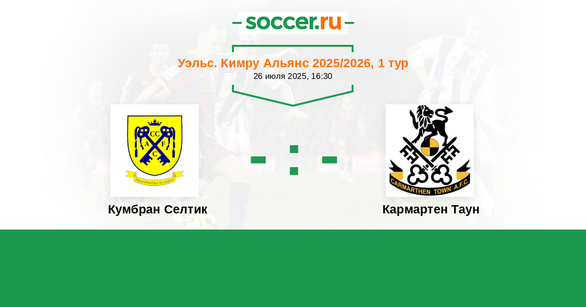 Протокол матча Кумбран Селтик против Кармартен Таун