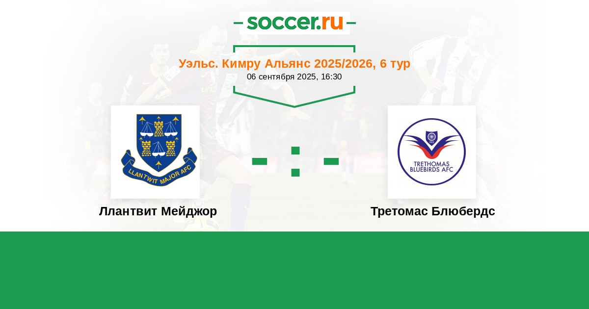Протокол матча Ллантвит Мейджор против Третомас Блюбердс
