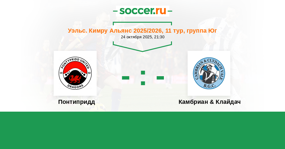 Протокол матча Понтипридд против Камбриан & Клайдач