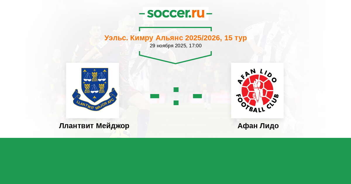 Протокол матча Ллантвит Мейджор против Афан Лидо