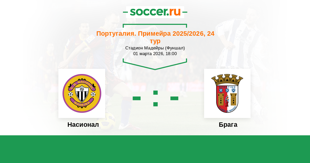 Португалия. Примейра 21.02.2025 Брага Логотип футбольный клуб Брага 1:0 Логотип футбольный клуб Насионал (Фуншал) Насионал