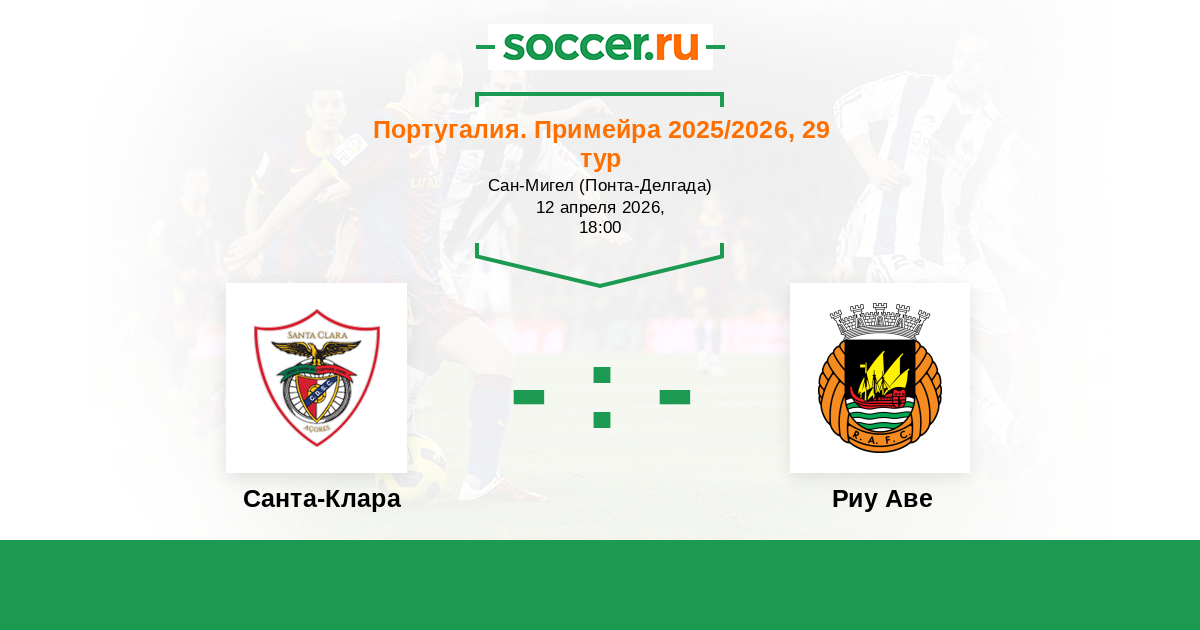Португалия. Примейра 18.04.2025 Риу Аве Логотип футбольный клуб Риу Аве (Вила-ду-Конди) 1:1 Логотип футбольный клуб Санта-Клара (Понта-Делгада) Санта-Клара
