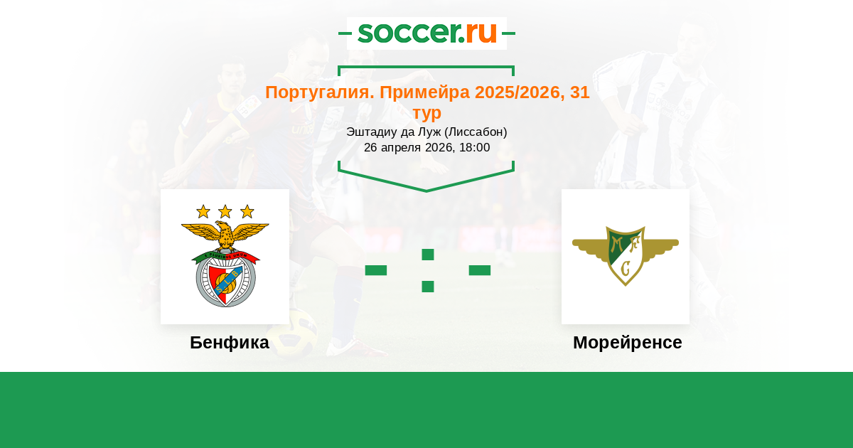 Португалия. Примейра 14.04.2024 Бенфика Логотип футбольный клуб Бенфика (Лиссабон) 3:0 Логотип футбольный клуб Морейренcе (Морейра-де-Конегуш) Морейренcе
