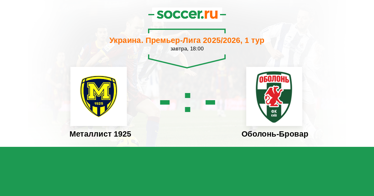 Протокол матча Металлист 1925 против Оболонь-Бровар