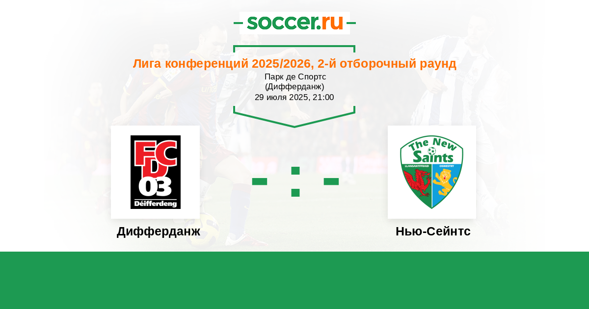 Протокол матча Дифферданж против Нью-Сейнтс
