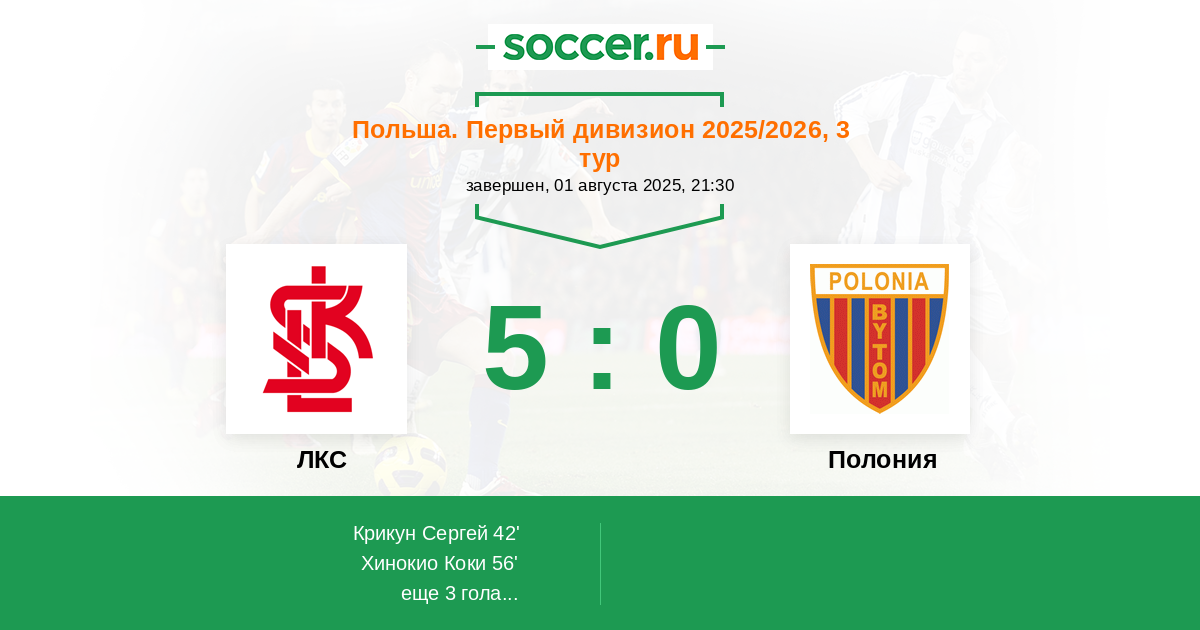 Протокол матча ЛКС против Полония