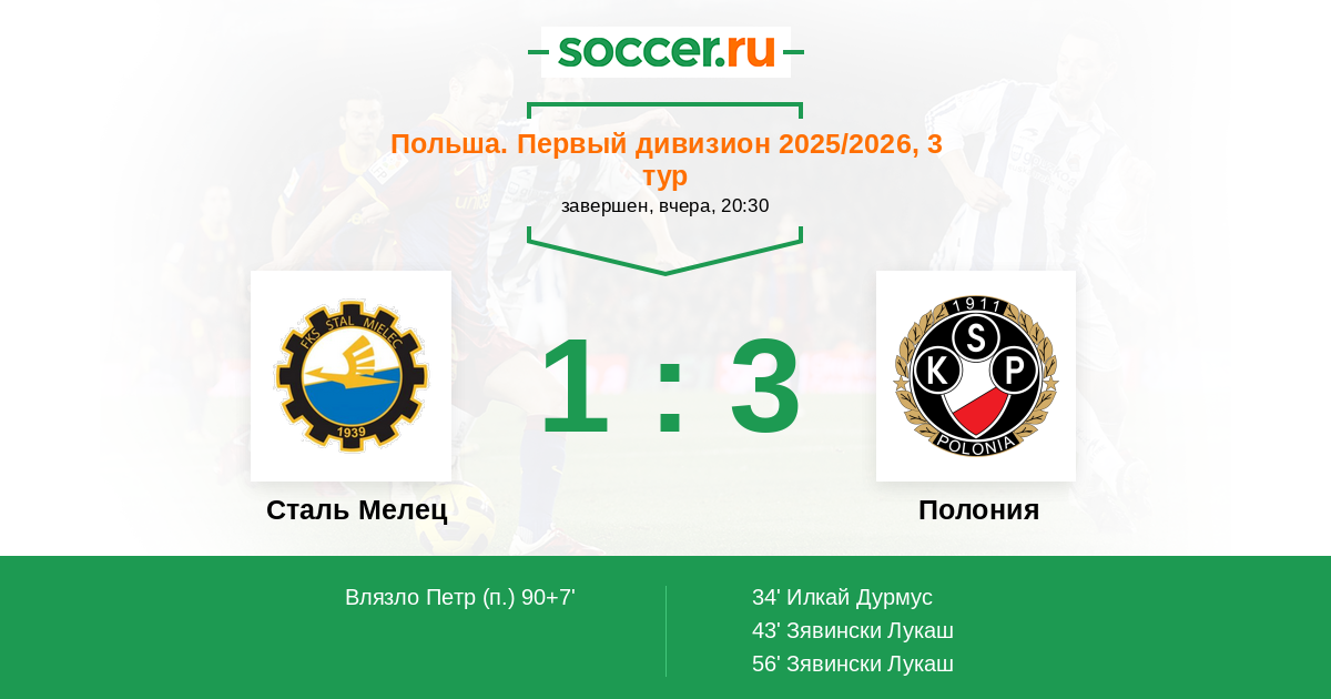 Протокол матча Сталь Мелец против Полония