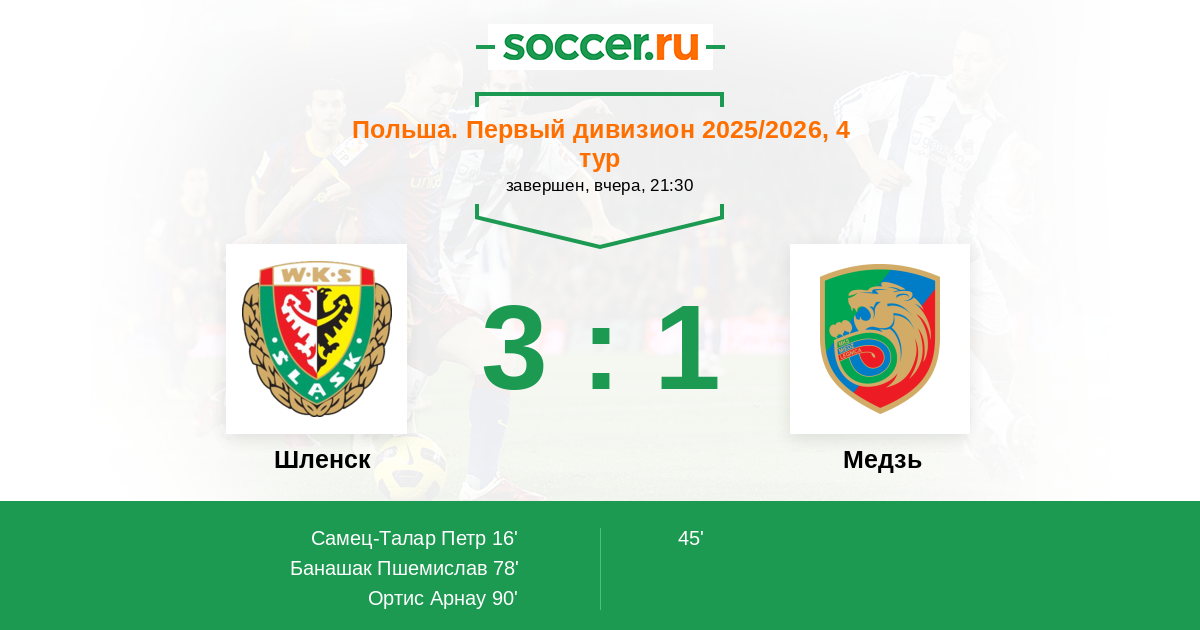 Протокол матча Шленск против Медзь