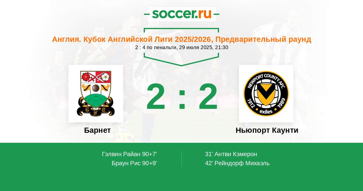 Протокол матча Барнет против Ньюпорт Каунти